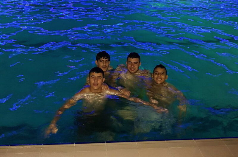Mahmoud Badran, at right, during the pool party he attended shortly before he was killed. (B’Tselem)